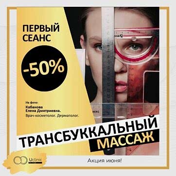 До конца июня в Юклиник действует специальная цена на ТРАНСБУККАЛЬНЫЙ массаж — 1750р. (вместо 3500р по прайсу)